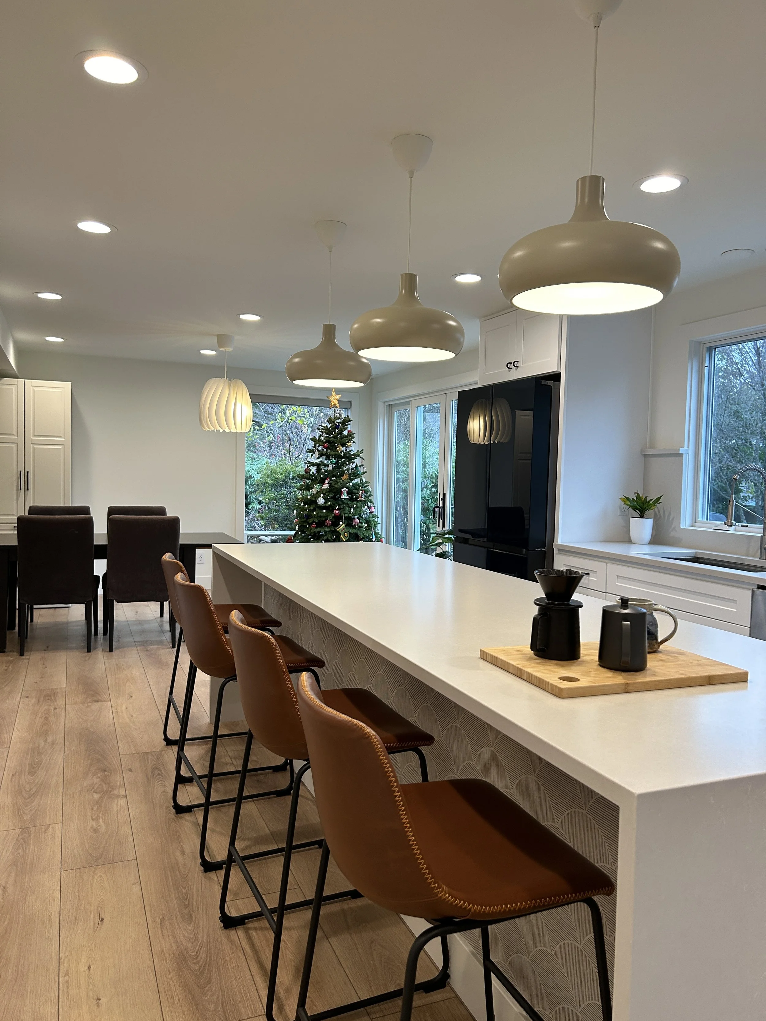 This remodel included a full reconfiguration of the space, an extended footprint, and a thoughtful redesign focused on flow, function, and light. We handled the entire process from concept to completion — including obtaining all necessary design and building permits required for the addition. The result is a bright, welcoming space that feels both timeless and completely customized to the homeowner’s lifestyle.